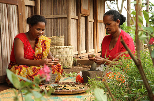 哈倫加那的採收和乾燥工作均由馬達加斯加北部一個名叫Joffreville的村莊村民負責,當地的Jardins du Monde團隊也會提供支援。
