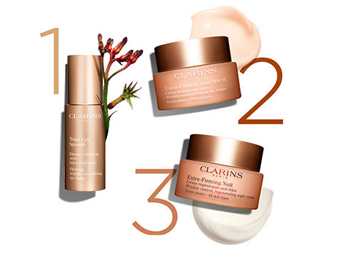 除了煥顏緊緻日霜之外,Clarins也建議每日早上使用以下兩款護膚品加強抗老效果: